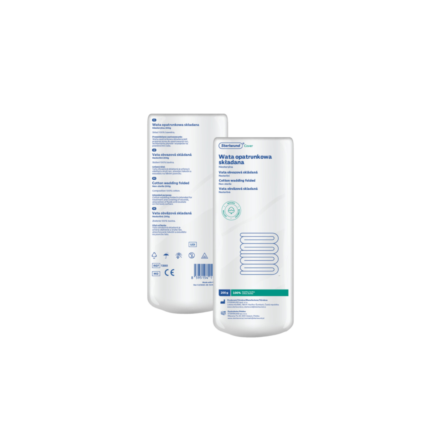 Wata bawełniana SteriCover wykonana w 100% z naturalnych, oczyszczonych i odtłuszczonych włókien bawełny. Charakteryzuje się wysoką chłonnością oraz klasyczną, puszystą strukturą, cenioną w codziennych zastosowaniach medycznych i higienicznych.