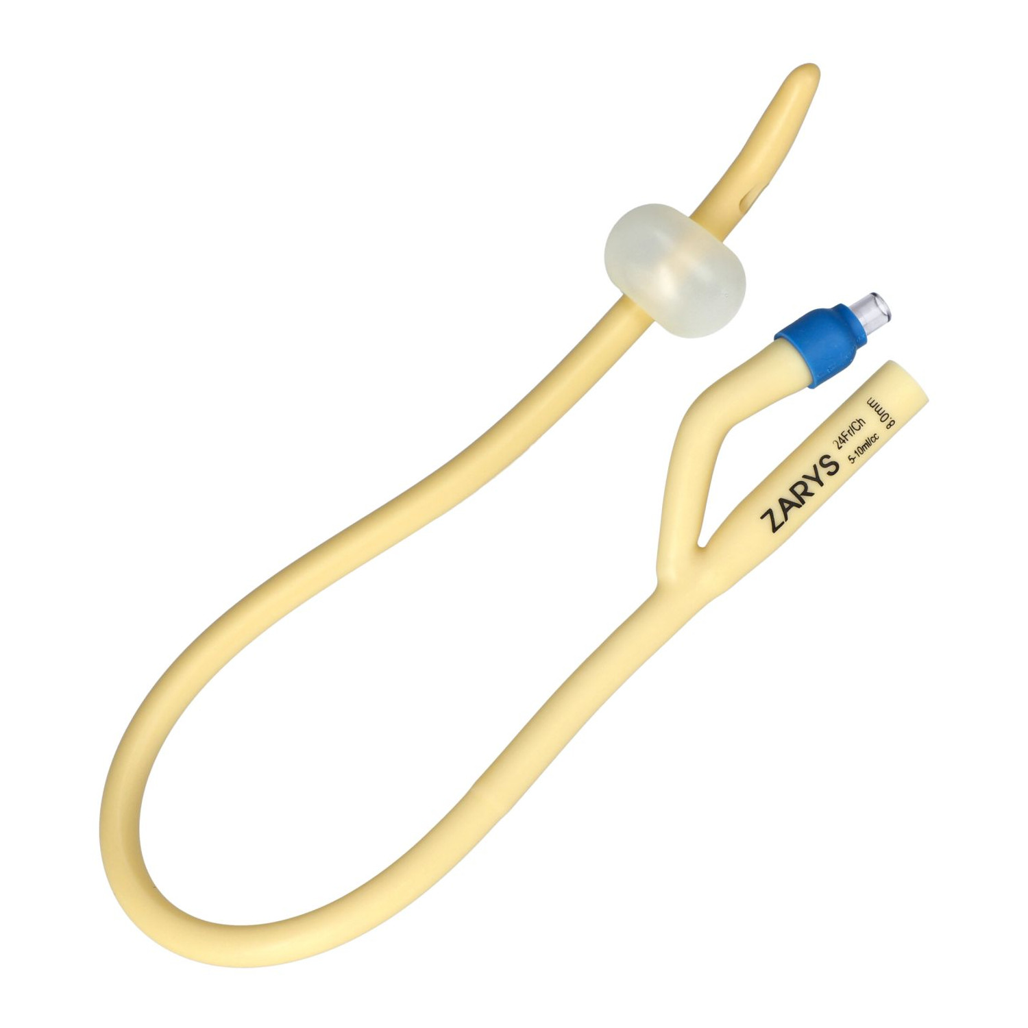 - Cewnik Foleya z końcówką Tiemanna jest wyposażony w odporny na rozrywanie i łatwy do napełnienia balon.