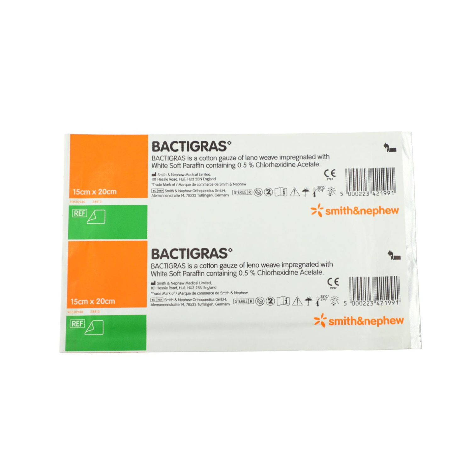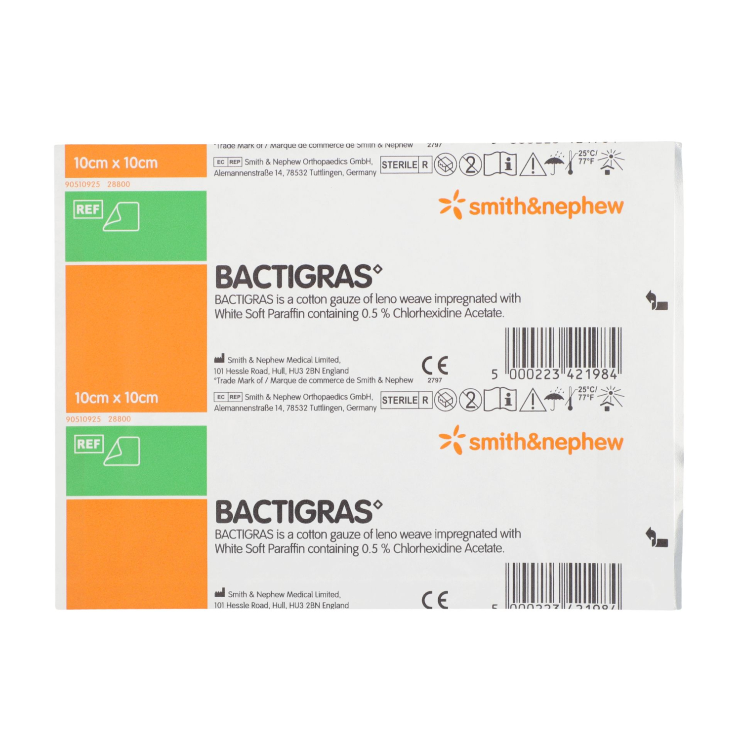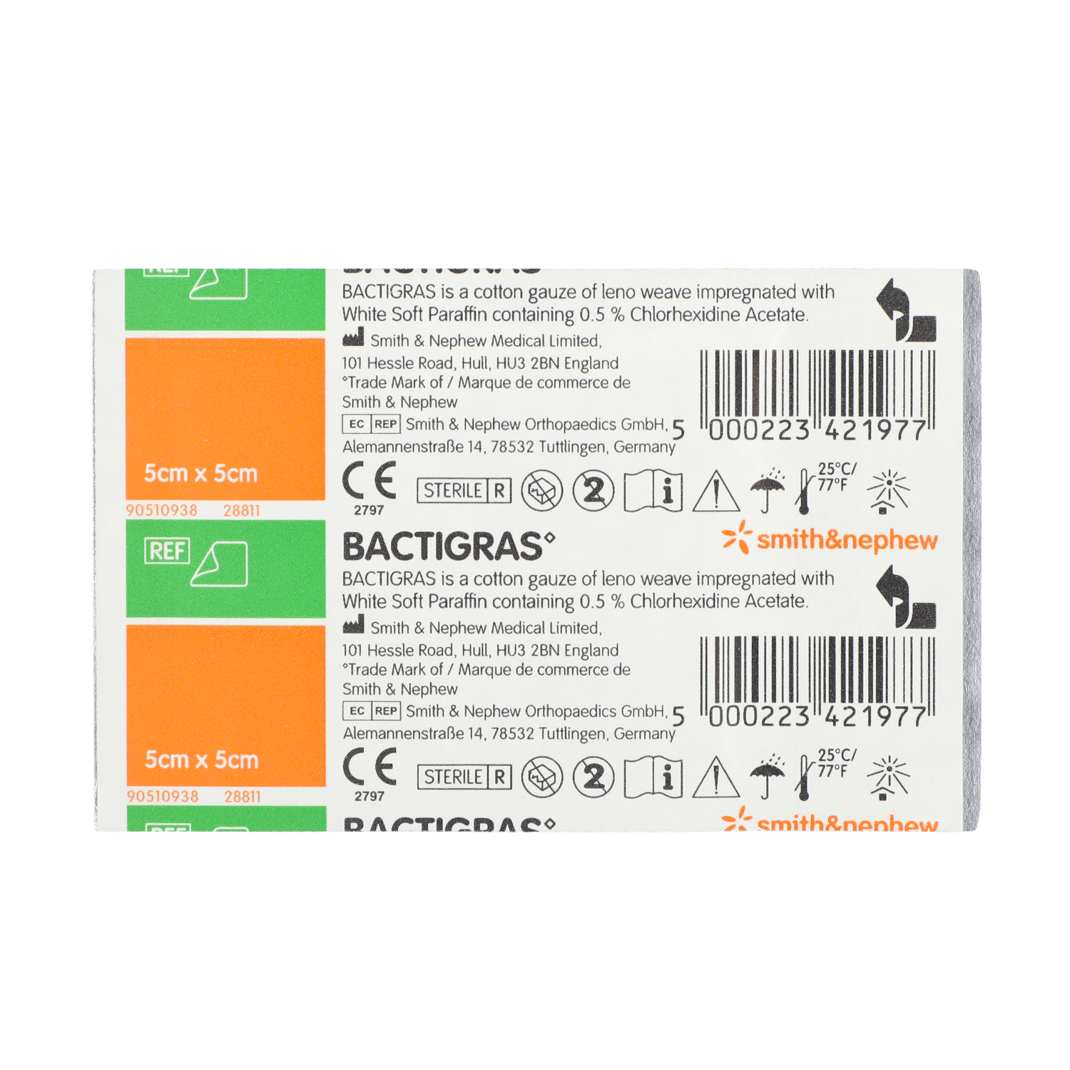 - Opatrunek parafinowy Bactigras jest wykonany z gazy tkanej splotem leno nasączonej parafiną z dodatkiem chlorheksydyny.