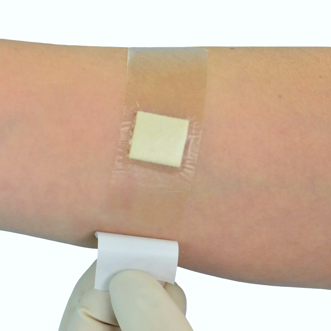 - Centralnie umieszczony wkład chłonny pod wpływem krwi zwiększa swoją objętość i uciska na ranę.