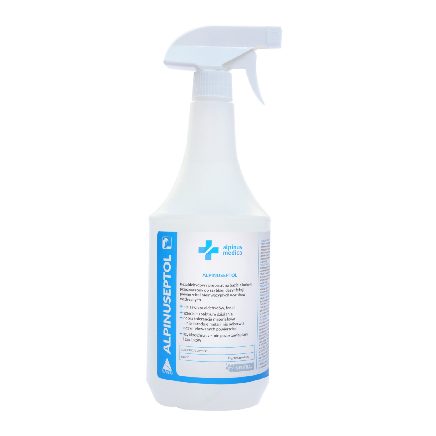 - Alpinuseptol to gotowy do użycia preparat do dezynfekcji powierzchni odpornych na działanie alkoholu.