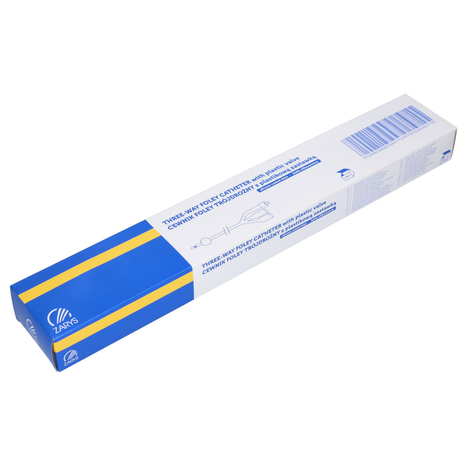 Cewnik Foley trójdrożny dostępny jest w rozmiarach od CH16 do CH24, przeznaczonych do zastosowań wymagających zwiększonej średnicy światła. Produkt wyposażony jest w balon o pojemności 30 ml, dedykowany do procedur z irygacją pęcherza moczowego.
