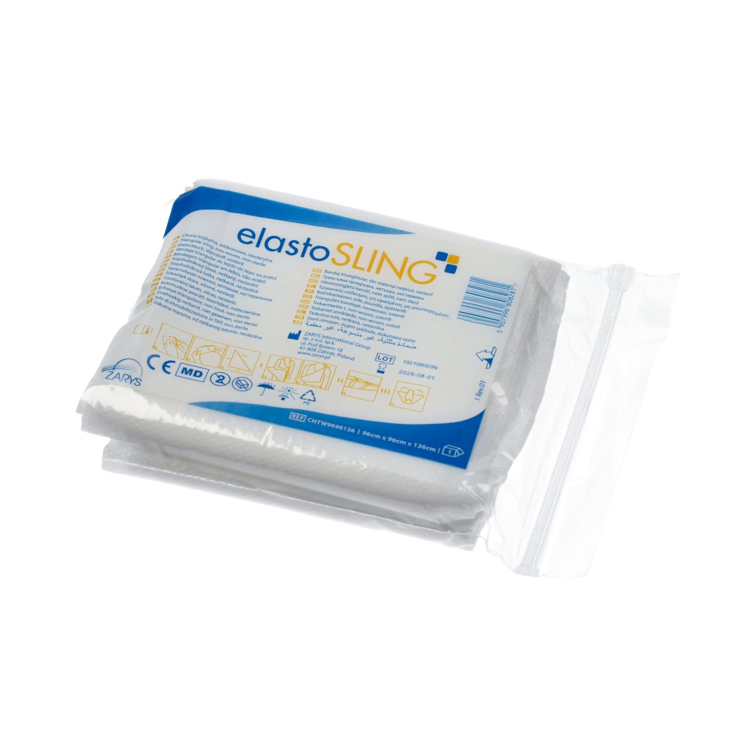 - Biała chusta trójkątna elastoSLING jest wykonana z miękkiej włókniny.