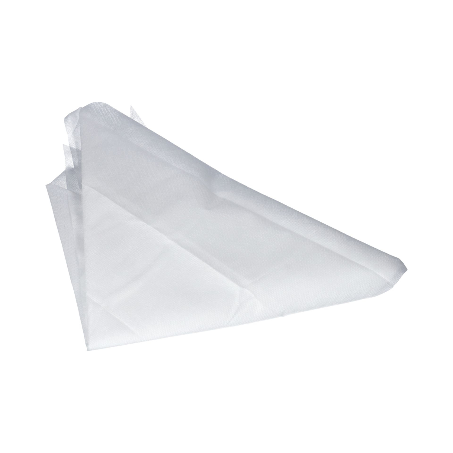 Jednorazowa chusta trójkątna wykonana z miekkiej, białej włókniny.