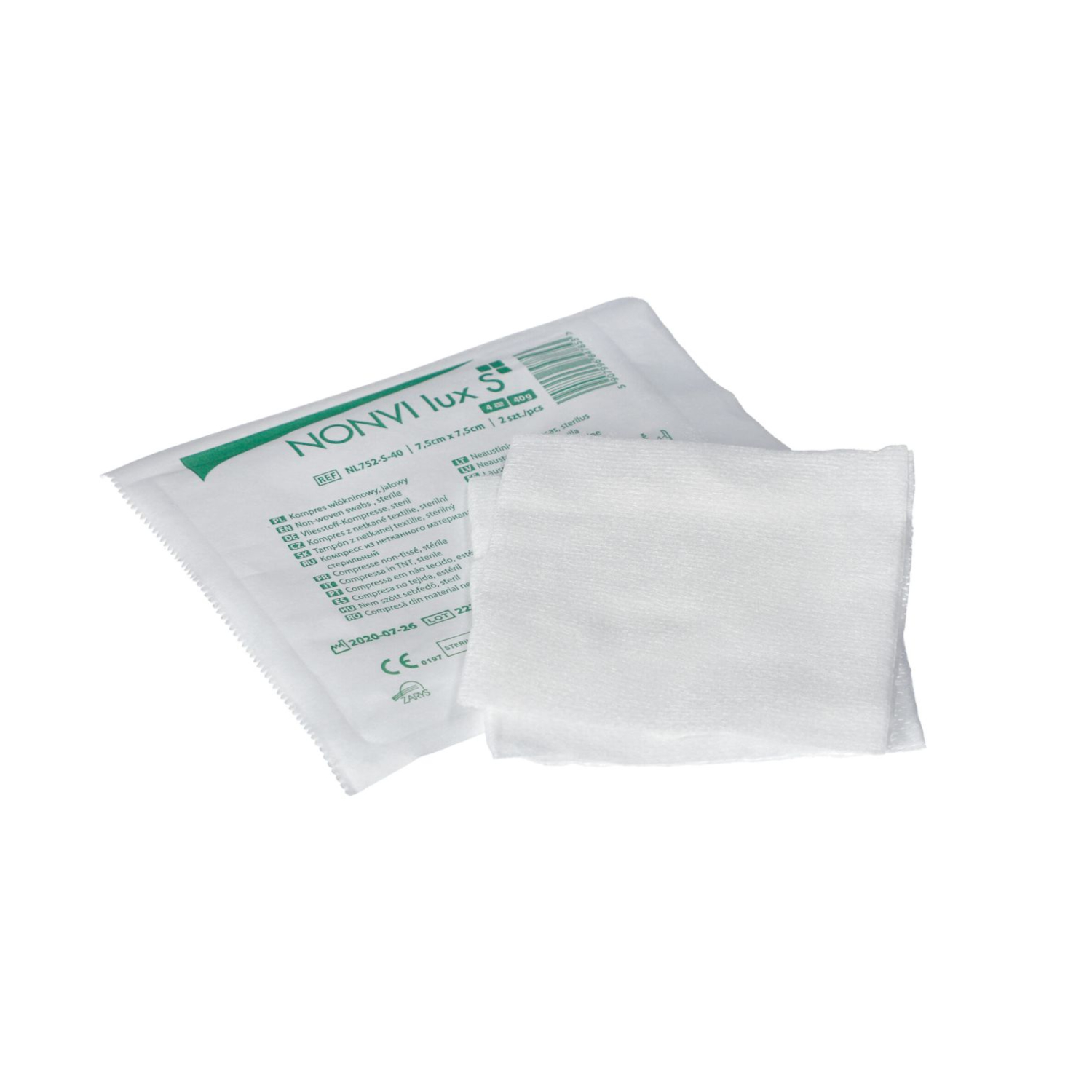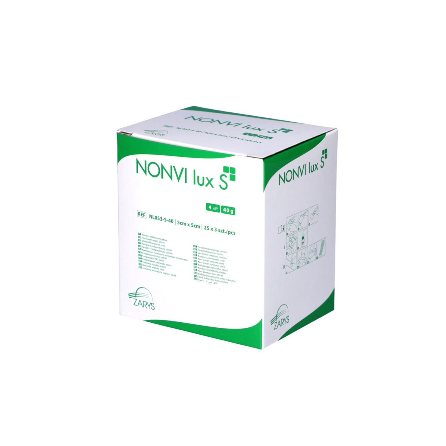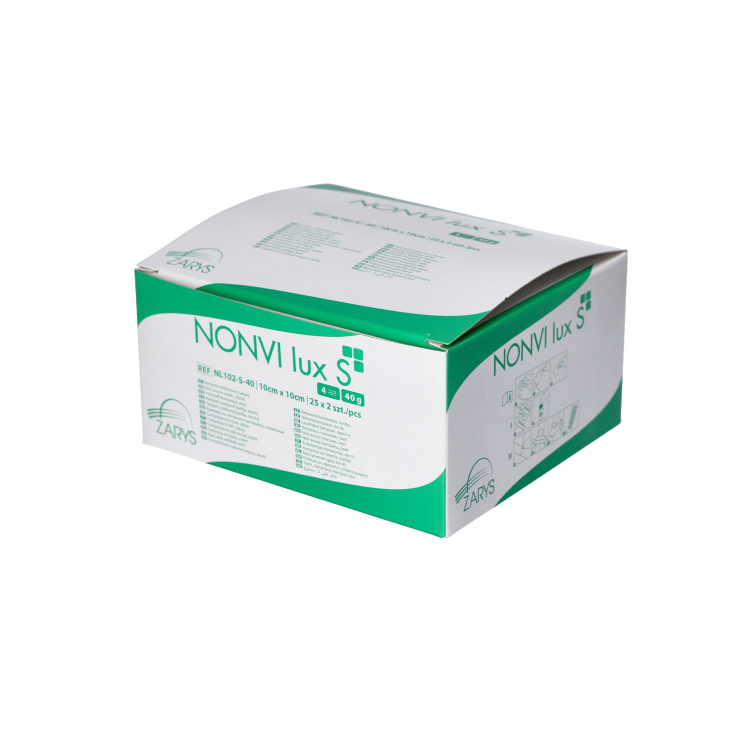 - Jałowe kompresy NONVI lux S są wykonane z miękkiej, dobrze chłonącej płyny włókniny o gramaturze 40g/m2.