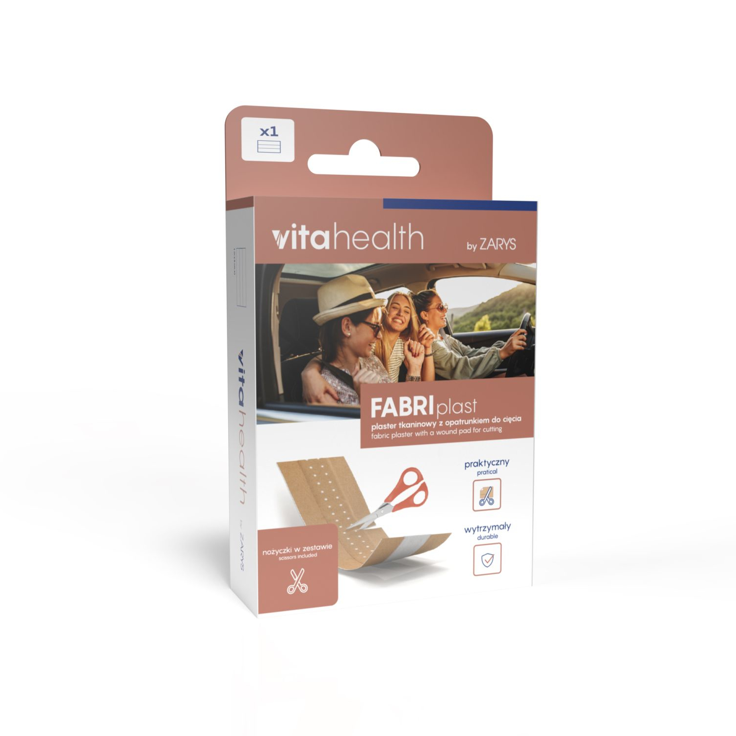 Plaster tkaninowy z opatrunkiem vitahealth FABRIplast nożyczki