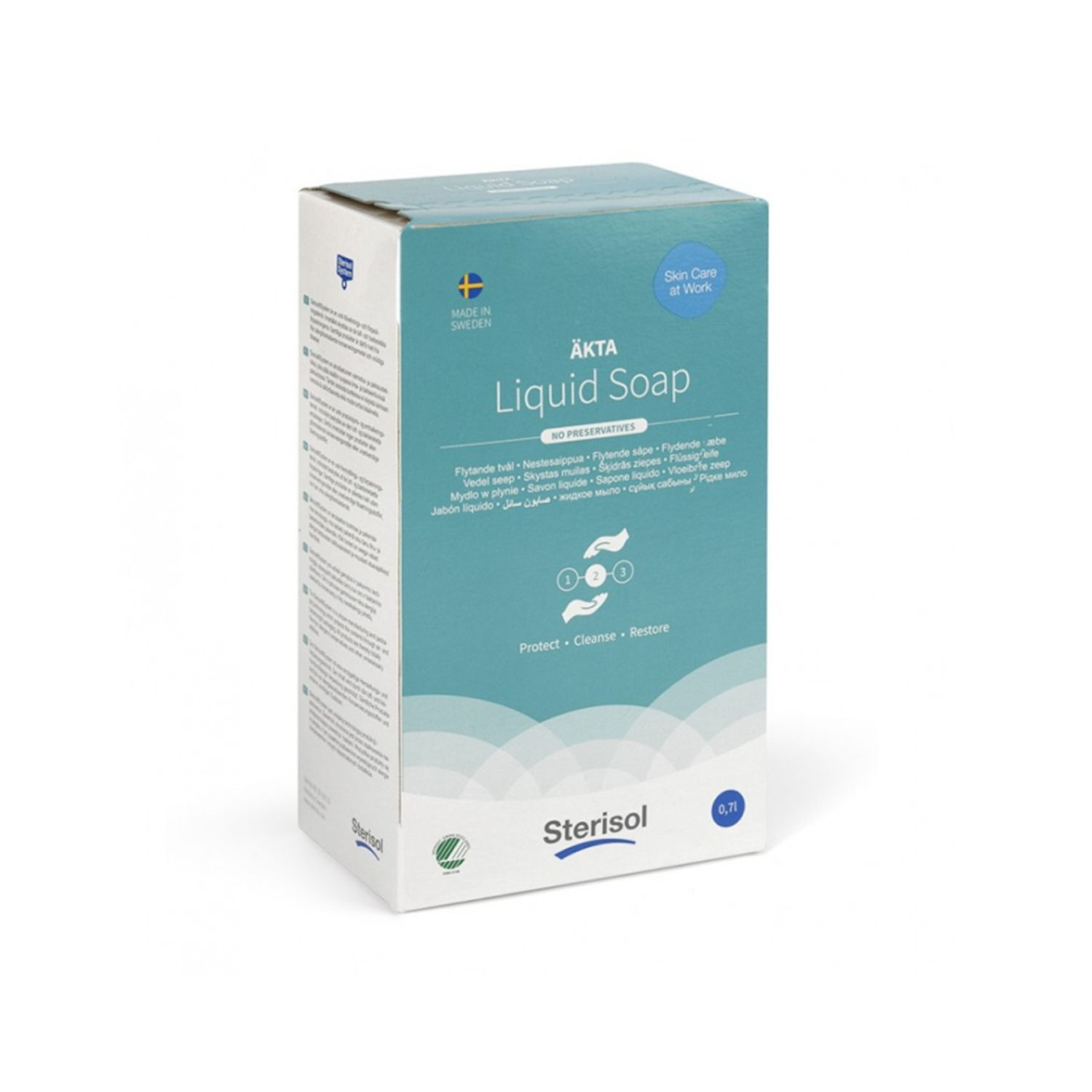 - Sterisol Äkta Liquid Soap jest delikatną emulsją do chirurgicznego mycia rąk i ciała.