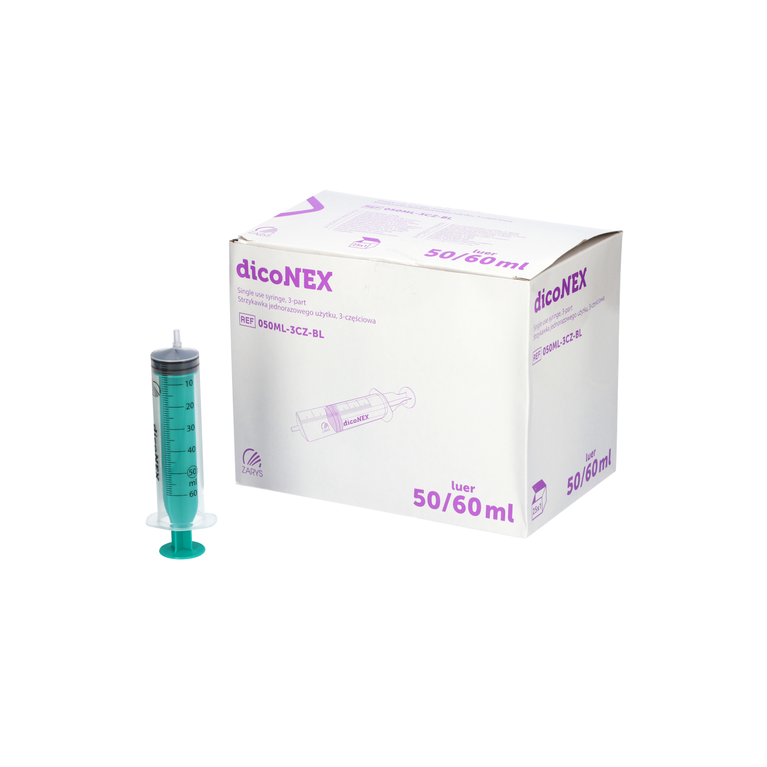 - Trzyczęściowe jednorazowe strzykawki dicoNEX mają przezroczysty cylinder wykonany z polipropylenu i kontrastujący, zielony tłok.