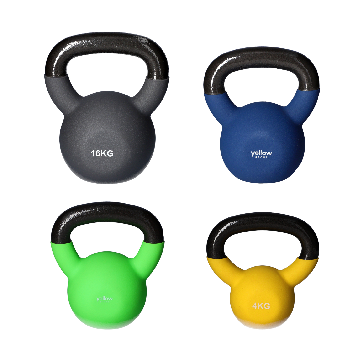 - yellowKETTLEBELL jest wykonany z wysokiej jakości żeliwa wykończonego przyjemnym w dotyku neoprenem.